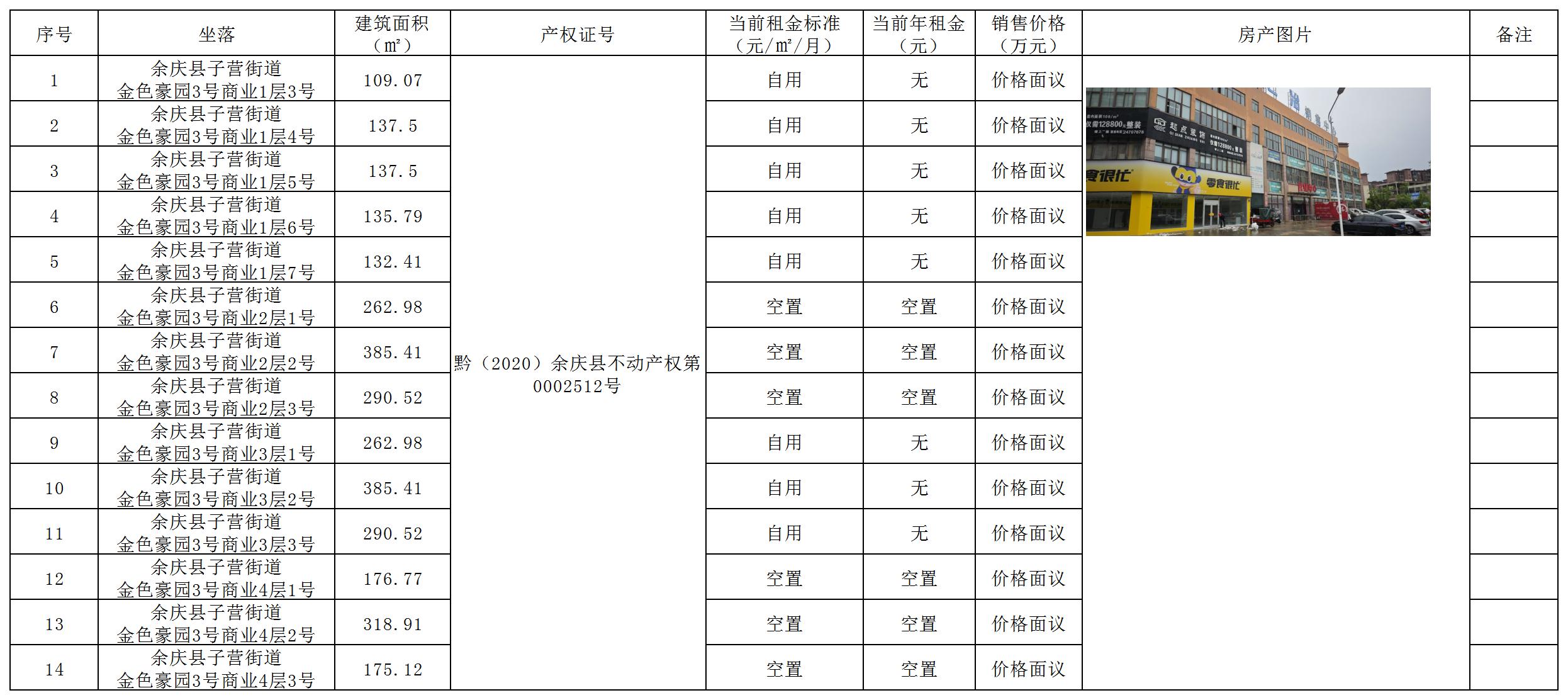 項(xiàng)目名稱:(預(yù)披露)七冶貴州置業(yè)余慶有限公司所持余慶縣臨街及社區(qū)商業(yè)用房資產(chǎn)整體出售