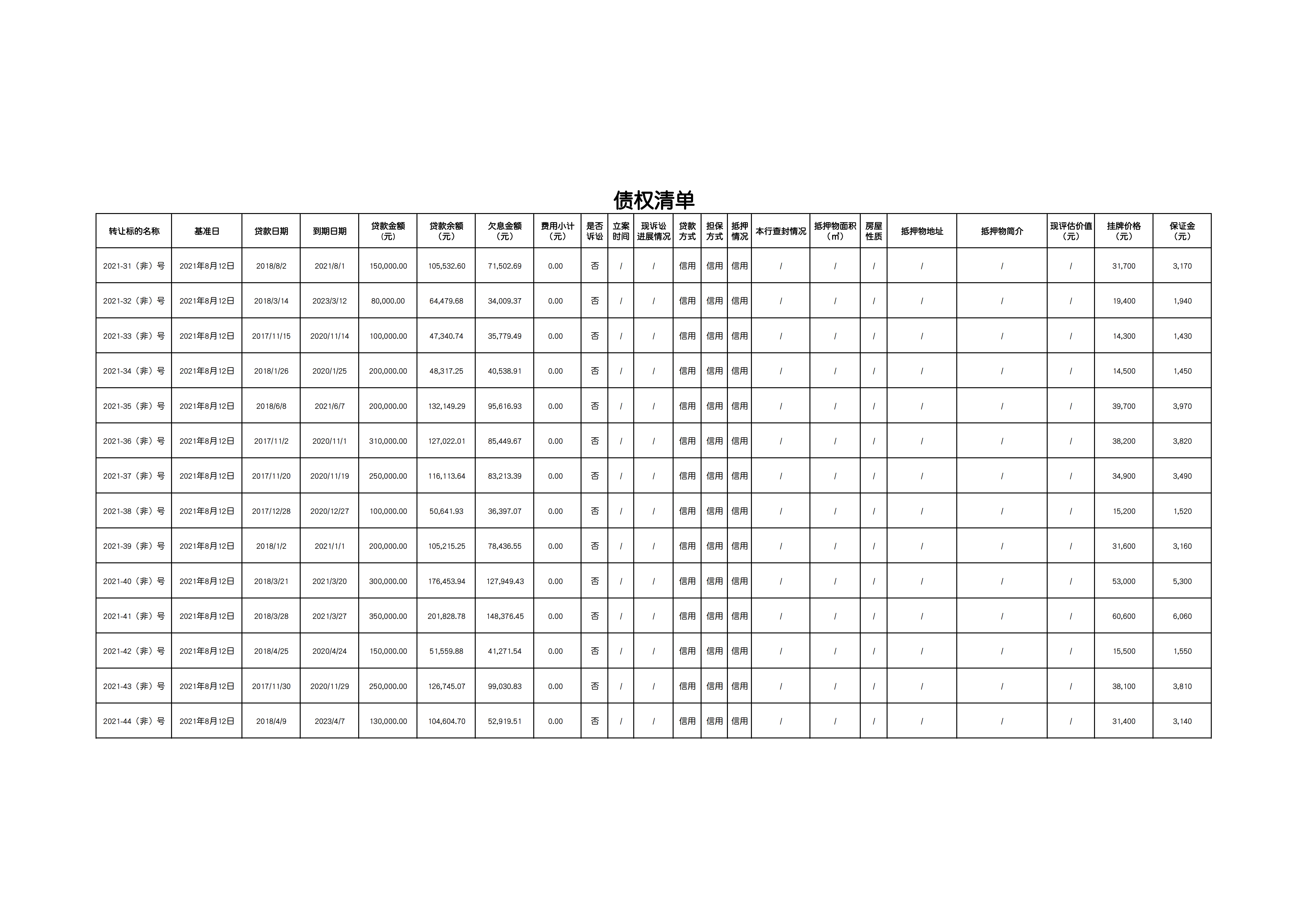 債權(quán)信息 | 債務(wù)人名稱 | 各筆債權(quán)簡況詳見附件“債權(quán)清單” | ||||||