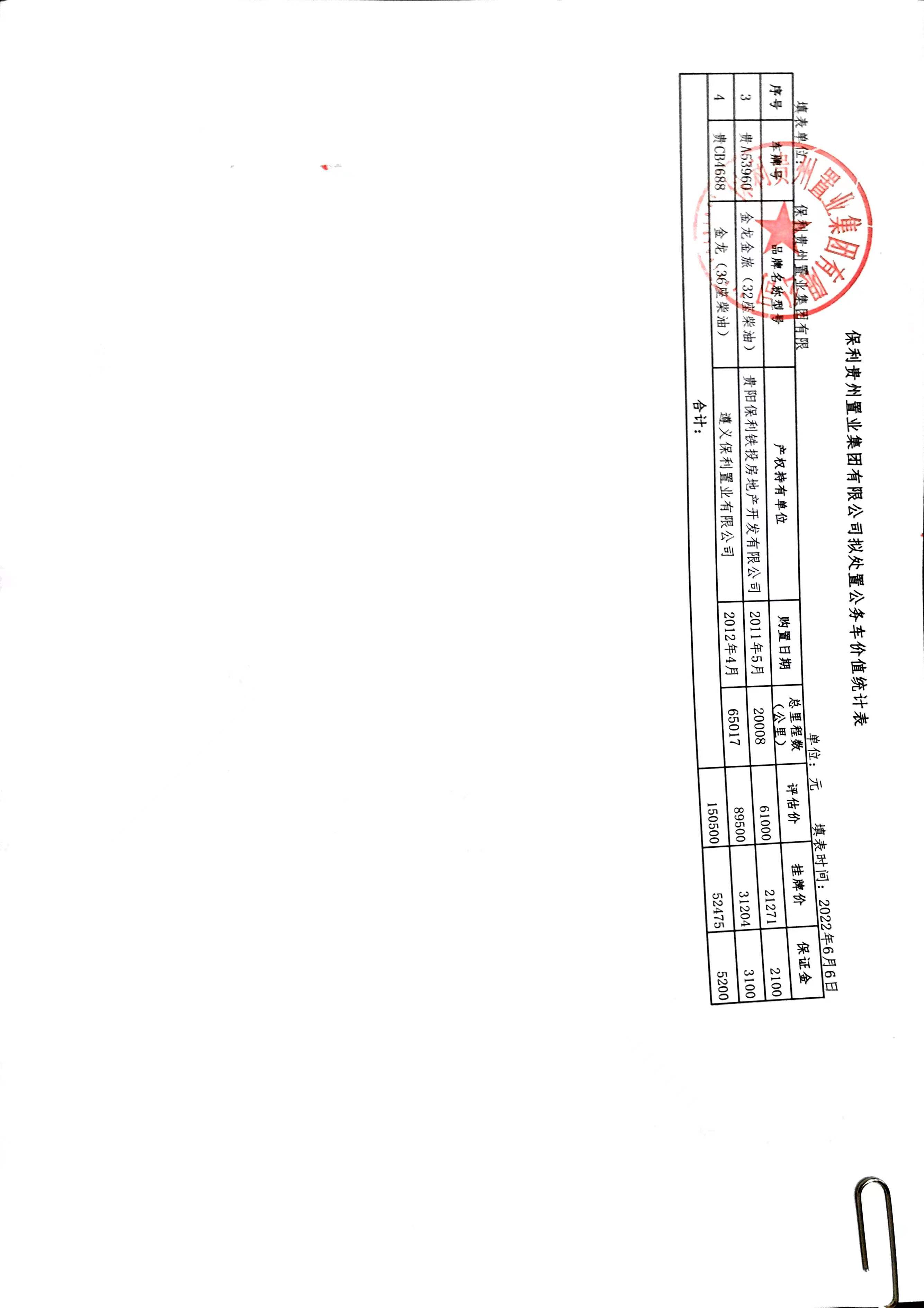 保利貴州置業(yè)公司處置停用公務(wù)車(十次降價(jià))